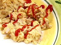 4.皿に盛り付け、マヨネーズ・ケチャップをかける