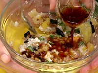3.塩・こしょうで味つけし、しょうゆを回しいれる。 |
