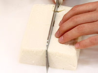 4.豆腐を4等分に切り、器にもりつけ(3)をかける |