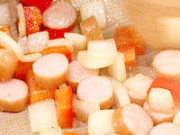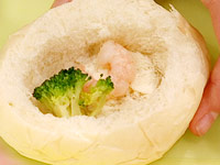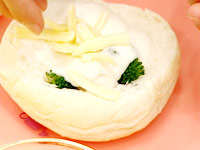 2.ブロッコリー、シーフードMIXをつめる。 |