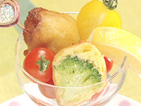 プチトマトとともにグラスに盛り、スピックをさす。 |