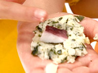 2.(1)をピンポン球の大きさに丸めて、中にタコを入れる。
