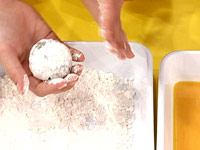 3.(2)に小麦粉、卵、パン粉をつける。