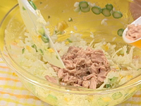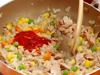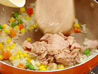 2.しんなりしたらツナ缶、ミックスベジタブルを加える。 |