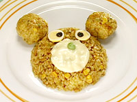 4.ごはんを入れ、中濃ソース、塩こしょうで味をととのえ、くまの形に盛り付ける。