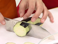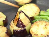 2.フライパンに油を熱し、乱切りしたピーマンと(1)を炒める