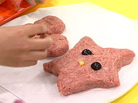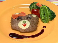 合い挽き肉…600g 玉ねぎ…1個 おから…1cup 牛乳…大さじ6 卵…11/2個 塩…小さじ1 こしょう…適量 (玉ねぎ炒め用)バター…大さじ11/2 塩・こしょう…適量 (ソース) ケチャップ…大さじ3 ウスターソース…大さじ3 (今回使用したトッピングの材料) スライスチーズ 人参 グリーンピース ブロッコリー ミニトマトうずらの卵 絹さや コーン缶 オリーブ(黒)