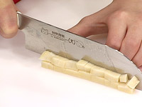 1.たけのこの下の部分を荒みじん切り、穂先はくし切りにする。 |