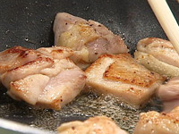 1.鶏モモ肉(一口大に切る)を塩コショウで味付し、バターで炒める。 |