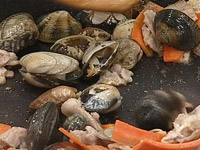 あさり(殻付き)…200g 豚バラ肉…100g 人参…45g
