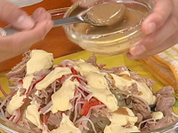 4.マヨネーズ、ごましゃぶのタレをすべて入れて混ぜ合わせ、皿に盛りつける |