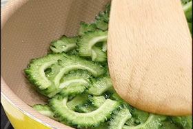 1.ゴーヤをバターで炒めて一旦取り出す |