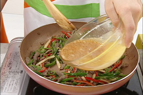 4.タレを入れて具材を絡ませる |
