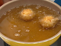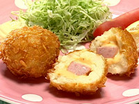 4.小麦粉⇒溶き卵⇒コーンフレークの順につけ、油で揚げる(180℃) |