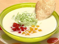 4.牛乳を入れ、ミキサーでなめらかになるまでかけ 塩で味を調え、約30分冷蔵庫で冷やす