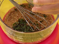 4.しょうゆ・酢・砂糖・ごま油・ごま・大葉・ネギを混ぜてつけタレをつくる |