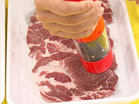 1.豚肉に塩こしょうをして小麦粉をつける |