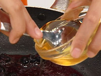 4.はちみつ・しょうゆ・バルサミコ酢を入れる |