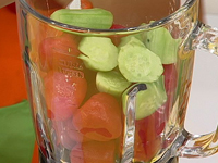2.ミキサーにトマトベリーきゅうり(皮をむく)玉ねぎ(みじん切り)を入れ とろとろになるまでかける