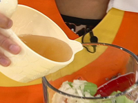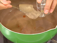 3.ゼラチン(水でふやかしたもの)をトマトベリーの煮汁に入れる