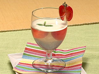 4.器にトマトベリー・煮汁を入れ、冷蔵庫で固め、 固まったら生クリーム・ミント・トマトベリーを飾る