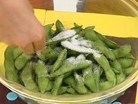 ☆枝豆を塩で洗うとゆでてもきれいな緑色のまま♪