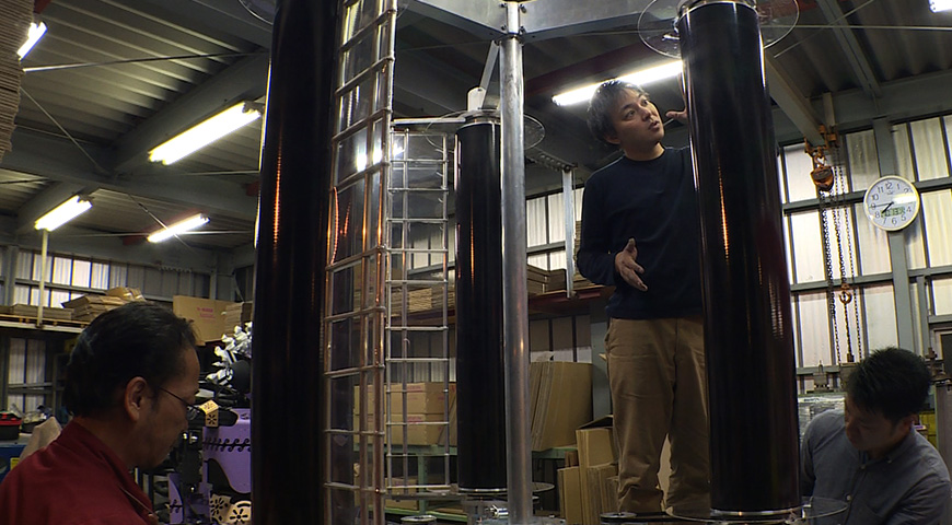 江戸時代から続く"ものづくり"の町、東京・墨田区の町工場が、崖っぷちに立たされている。区の調査によれば、45年前に9700社ほどあったのが、現在は2800社にまで激減。さらに5年以内に100社が廃業するという。そうした状況に危機感をもったのが、「浜野製作所」。板金など金属加工を得意とする、従業員30人ほどの町工場だ。小型電気自動車の開発や世界初となる深海用小型無人探索機の開発プロジェクトへの参加など、本業以外の挑戦にも積極的な企業である。「下請けとして仕事をこなすだけでは、10年後、20年後に生き残っていけるか分からない」と話す社長の浜野慶一さんは、新たに"ものづくり"をしようと考えている人たちを支援しようと、自社工場の一角に「ガレージ・スミダ」を開設した。3Dプリンターやレーザーカッターなど、最新のデジタル加工機が備えられている。個人のデザイナーから、起業したい若者、大手メーカーの開発者まで、希望すれば誰でも施設の利用が可能という。さらに、墨田区内の町工場が協力して部品の加工を手伝うなど、様々な要望に応えられる仕組みを作っている。いわば「ものづくりの駆け込み寺」だ。そんなガレージ・スミダに、あるベンチャー企業から新たな依頼が舞い込んだ。プロペラがなく、微風でも強風でも、さらには台風でも発電できるという、次世代型の風力発電機を開発したいという。町工場とベンチャーが組んで挑む夢の風力発電機の開発。果たして、実現するのか?