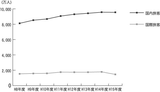 [グラフ:国内・国際線旅客推移]
