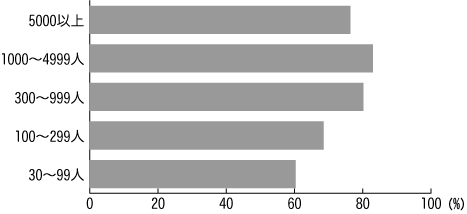 [グラフ:従業員規模別 女性の育児休業取得者割合]