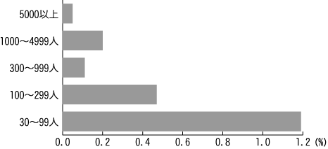 [グラフ:従業員規模別 男性の育児休業取得者割合]