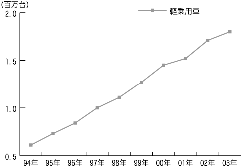[グラフ:「軽四輪車中古車販売台数の推移]