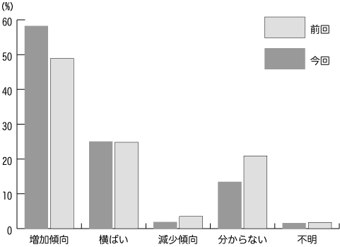 [グラフ:ここ3年間の「心の病」の増減傾向]