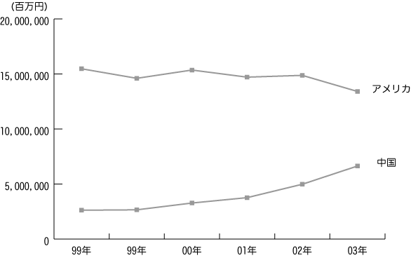 [グラフ:日本の中国・米国に対する輸出入額]