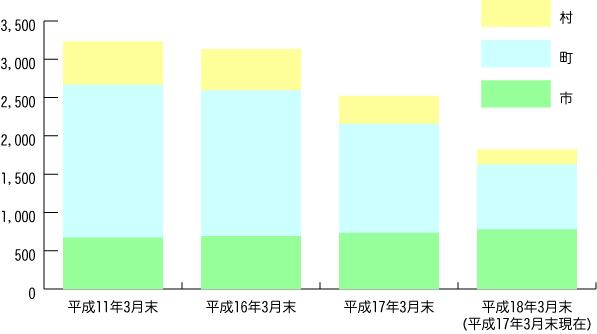 [グラフ:平成11年からの市町村の数の推移]