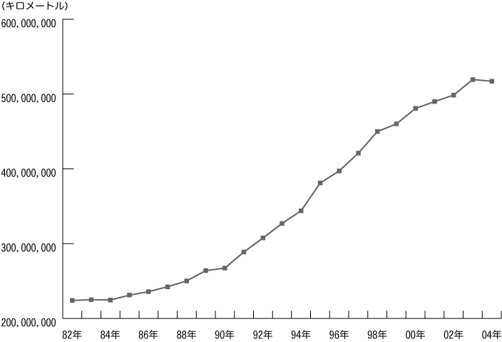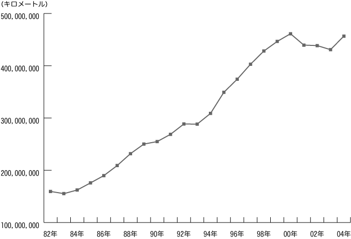 [グラフ:国内航空累年統計(運航キロメートル)]