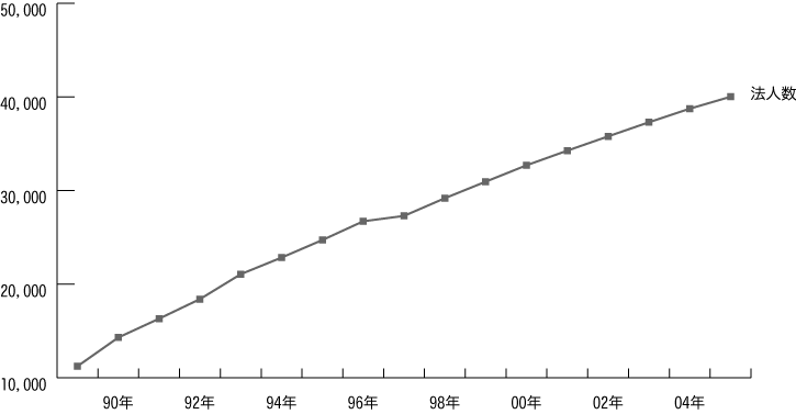 [グラフ:医療法人数の年次推移]