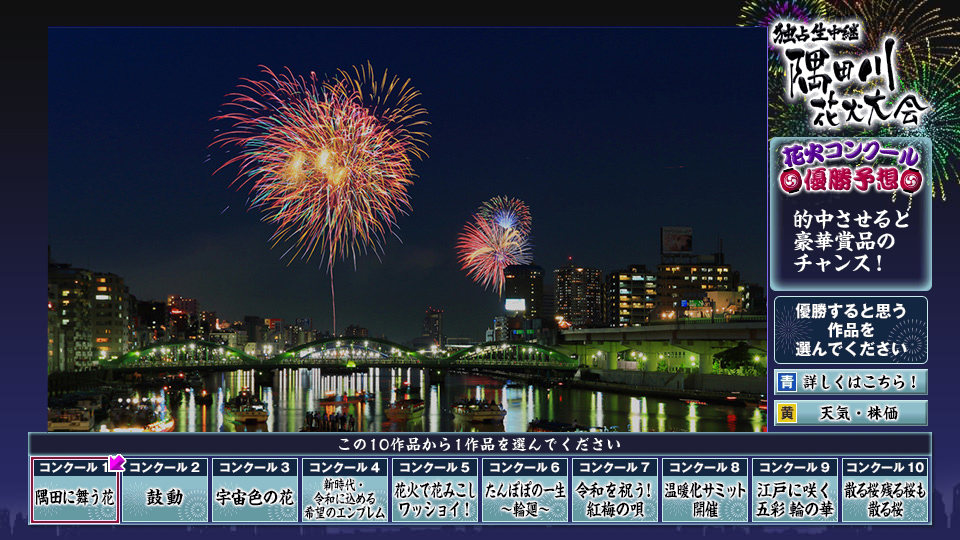 • データ放送でコンクール優勝花火を予想しよう!
