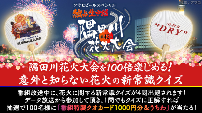 番組内で出題される「隅田川花火大会クイズ」にデータ放送で参加できます!