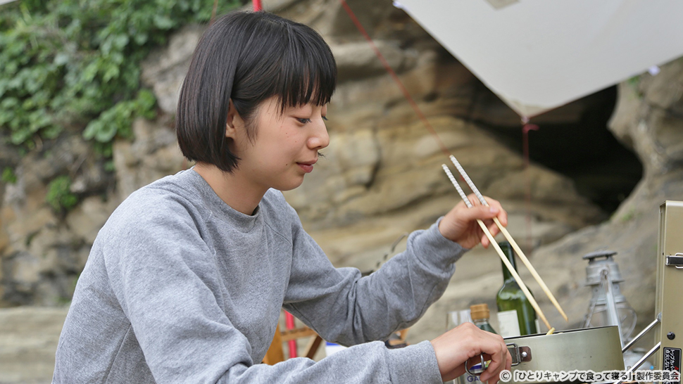 海や山をひとりで訪れては、地場食材を自ら獲って食べる七子(夏帆)。渓流でヤマメ釣りをしていた七子だったが、全く釣れない。ふと水辺を見ると大量のクレソンを発見!早速、調理するためクレソンを洗っていると、会社の人とキャンプに来ていた由紀(柳英里紗)と出会う。