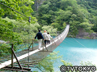 高さ8m、長さ90m、一度にわたれるのは10人までで。 橋の下には吸い込まれそうなエメラルドグリーンの水面が広がる。 【いい旅・夢気分】 |