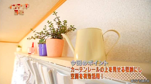 カーテンレールの上を見せる収納にし、空間を有効活用!