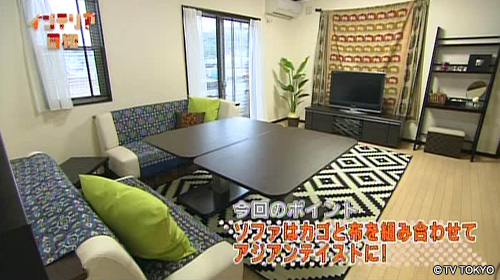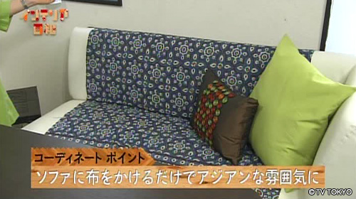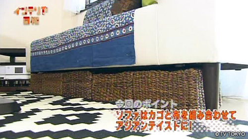 ソファはカゴと布を組み合わせてアジアンテイストに!