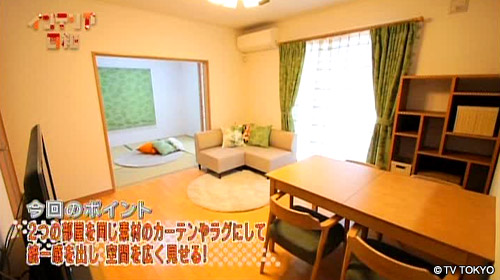 2つの部屋を同じ素材のカーテンやラグにして統一感を出し、空間を広く見せる!