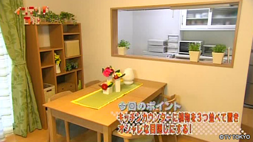 キッチンカウンターに植物を3つ並べて置き、 オシャレな目隠しにする!