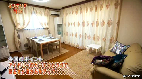 アイボリーのカーテンとラグで明るさと温かみをアップ!