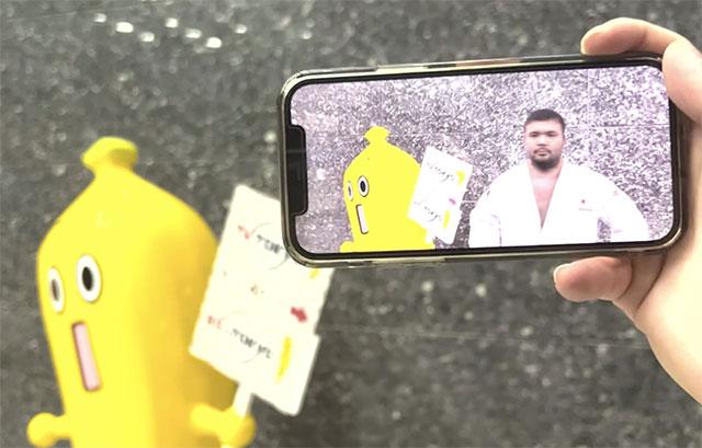 イラストにアクセスしてスマートフォンをかざすと、そこにいるはずのないウルフアロン選手が出現!