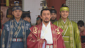 チュモンは宮殿に忍び込みユファに再会する。ユファは泣いて喜ぶが、テソに用心するようチュモンに警告する。ユファからチュモンが生きていてテソに狙われている事を聞いたクムワは、重臣会議を開きテソや家臣達がいる前でチュモンを温かく迎え入れる。