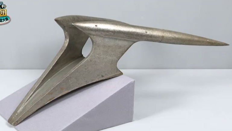 1960年から31年間活躍した東武鉄道の看板特急けごん・きぬ デラックスロマンスカーの先頭部に設置されたシンボルマーク。デラックスロマンスカーはDRC、鉄道ファンの間では「デラ」の愛称で呼ばれていた。形状から、ファンの間では「デラの角」と呼ばれている。このシンボルマークは18個存在している。そのうち2つは東武博物館、岩槻城址公園に保存されている。製造時期により砲金製とアルミ製があり、依頼品はアルミ製。数も少ない貴重なもの。
