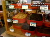 店内には、あさりや昆布などたくさん種類の佃煮が並んでいます。