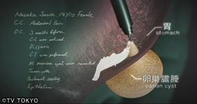 そこで命は、口から胃を通して卵巣嚢腫を摘出するという、世界初の方法で手術を行う。